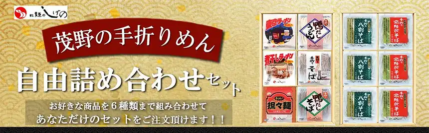 そばやうどん等の乾麺を製造販売している茂野製麺の直売店です。